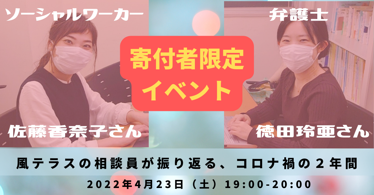 【寄付者限定イベント】「風テラスの相談員が振り返る、コロナ禍の2年間」開催!