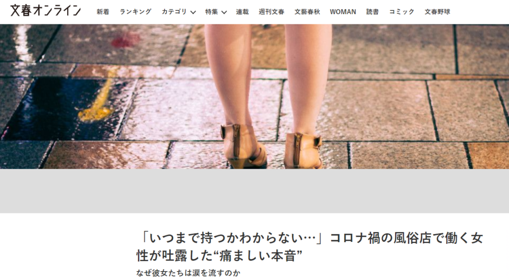 9月21日(月)、文春オンラインに風テラスの相談現場を描いた記事を掲載して頂きました。 『「いつまで持つかわからない…」コロナ禍の風俗店で働く女性が吐露した“痛ましい本音” なぜ彼女たちは涙を流すのか』 ヤフーニュースでも配信され、「記事を読み...
