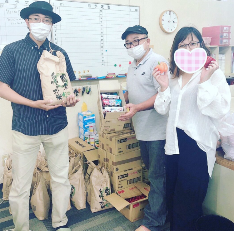 新潟県フードバンク連絡協議会と風テラスが連携して、新潟県内でナイトワークをしている女性の中で、新型コロナの影響で生活に困っている方々を対象として、食料支援を行う事業を開始いたしました。 写真:フードバンクあがの山田さん(左)、風テラス坂爪...